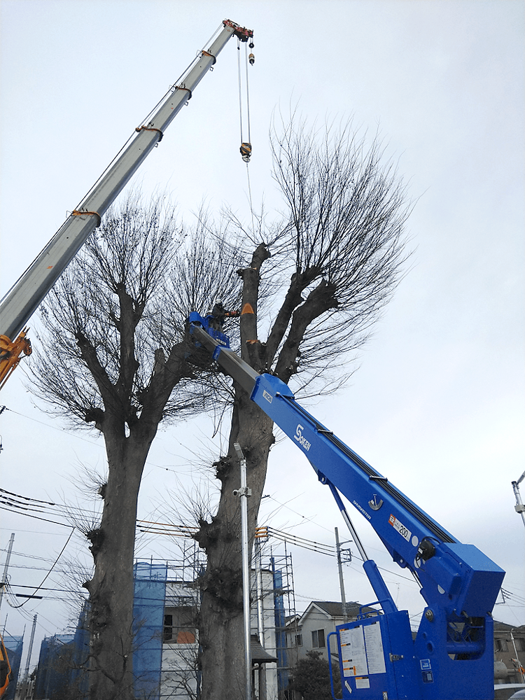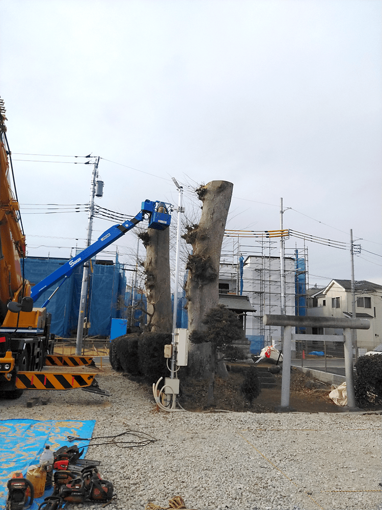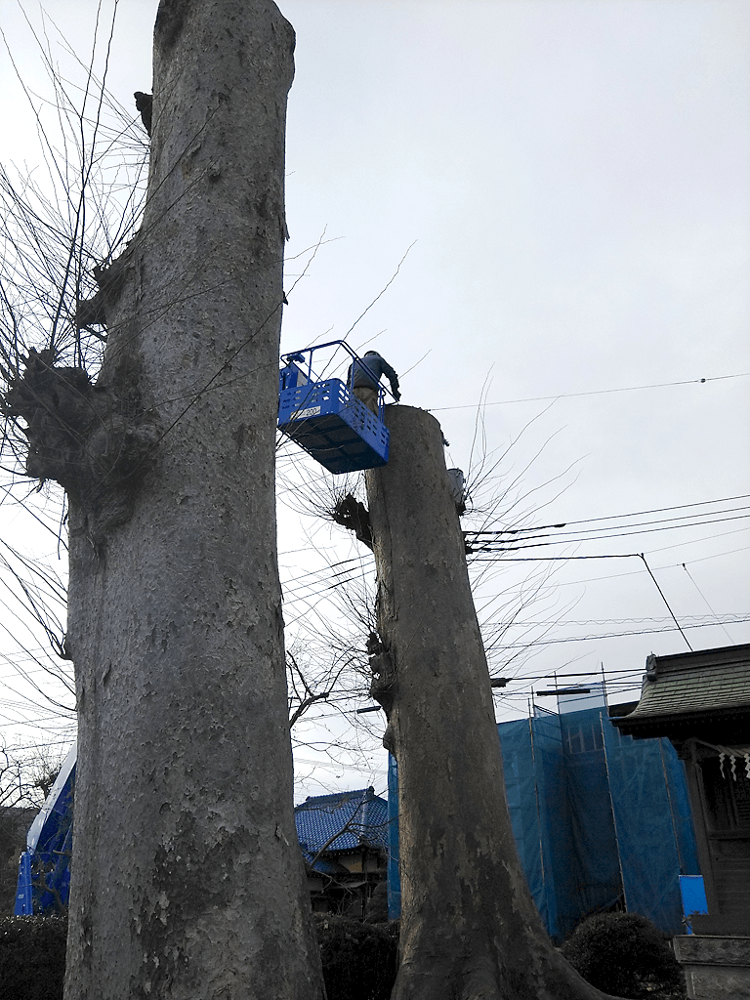 神社のケヤキの切り詰め