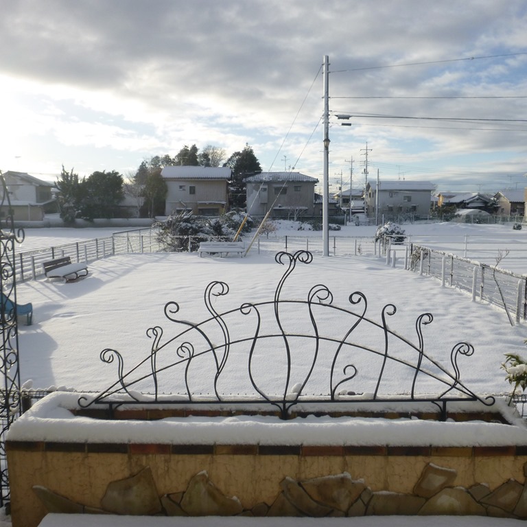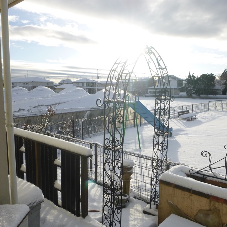 2/9(日)の朝、我が家の窓を開けると雪国状態。