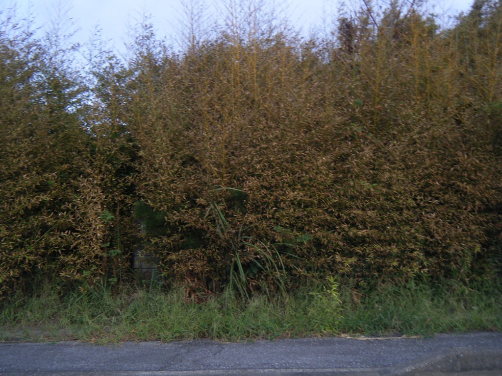 この周辺も波打ち際から1kmほど津波の被害に遭い、そのとき運ばれた塩害によって イヌマキ・クロマツ・タブノキ・シノダケ林が葉が赤くなり枯れていました。