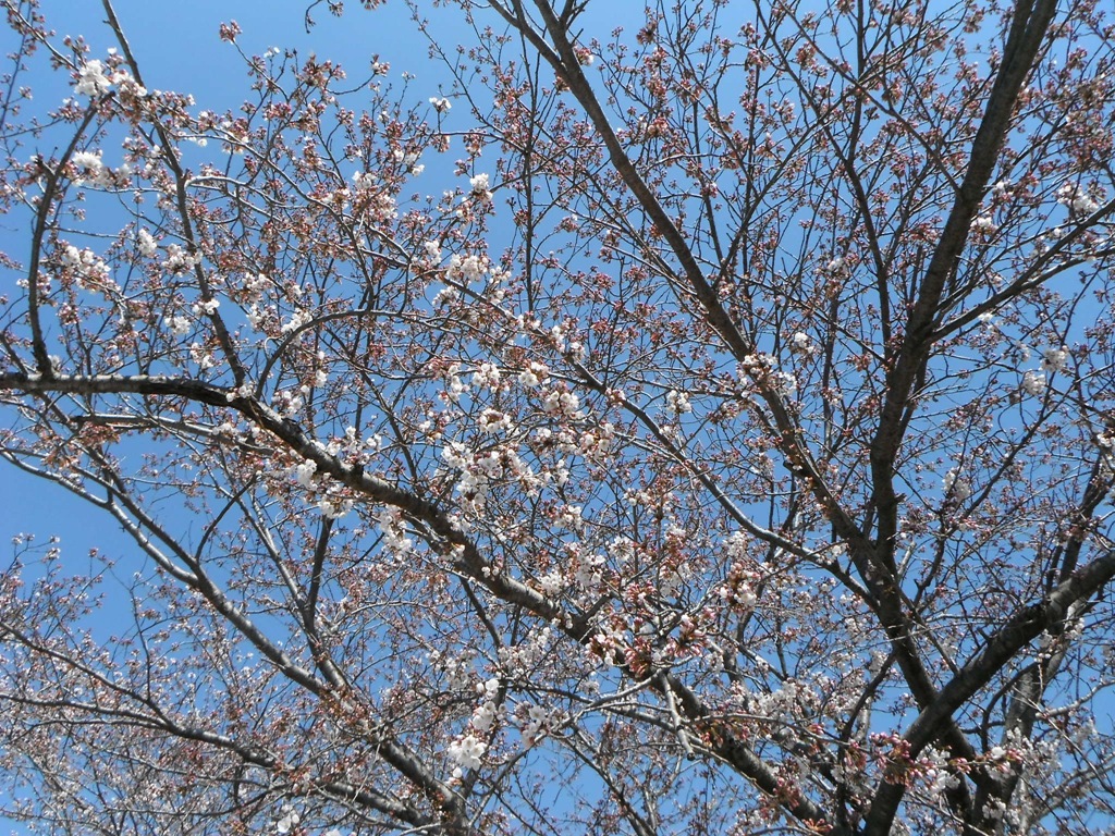 今年は、冬が長かったために梅や桜の開花が遅れ、入学式だというのにやっと開花し始めたソメイヨシノ。
